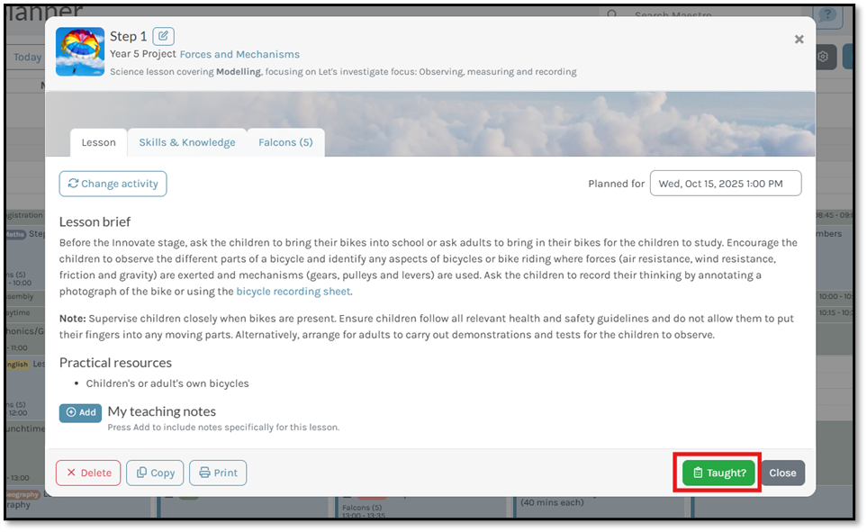 Once you have taught a lesson that you have planned a date and start time for, you can then record the lesson attainment.