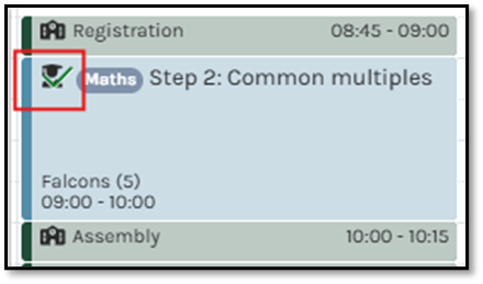 When you go back to your My Planner page, you will see a tick over the lesson icon to show that the lesson attainments have been recorded.